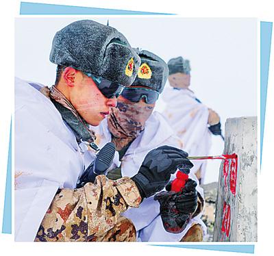 天色漸暗,山頂氣溫驟降,寒風(fēng)呼嘯。官兵們臉上沒有一絲畏懼,年輕的面龐更加堅毅,互相鼓勵的聲音在隊(duì)伍中回蕩,“界碑不遠(yuǎn)了,再加把勁!”