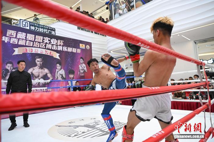 11月15日,2025年西藏自治區(qū)搏擊俱樂部聯(lián)賽暨年度總決賽在拉薩啟幕。本次賽事以“世界之巔·終極對決”為主題,匯聚了拉薩楊洋搏擊俱樂部、西藏恩波格斗、格薩爾格斗、勇士格斗等多家俱樂部的70余名搏擊選手,在海拔 3600 米的高原擂臺(tái)上展開巔峰較量。圖為2025年西藏自治區(qū)搏擊俱樂部聯(lián)賽暨年度總決賽比賽現(xiàn)場。中新社記者 貢嘎來松 攝