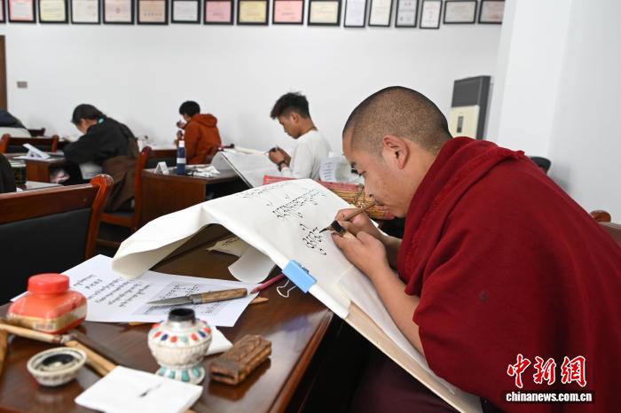 11月23日,第二屆“工巧杯”西藏工藝美術(shù)中青年高技能人才技藝大賽現(xiàn)場(chǎng)實(shí)操技能在拉薩市唐卡藝術(shù)博物館開賽。本次大賽以“薪火相傳 守正創(chuàng)新”為主題,由284名選手來(lái)自西藏6(市)地的42個(gè)縣(區(qū)),涵蓋唐卡、雕塑、編織等36類工藝。據(jù)悉,西藏工藝美術(shù)行業(yè)現(xiàn)有2700余家市場(chǎng)主體、3.7萬(wàn)余名從業(yè)者,2024年產(chǎn)值超30億元(人民幣)。圖為參賽選手在寫藏文書法。中新社記者 貢嘎來(lái)松 攝