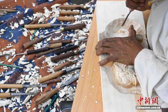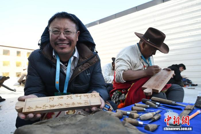 11月23日,第二屆“工巧杯”西藏工藝美術(shù)中青年高技能人才技藝大賽現(xiàn)場(chǎng)實(shí)操技能在拉薩市唐卡藝術(shù)博物館開賽。本次大賽以“薪火相傳 守正創(chuàng)新”為主題,由284名選手來(lái)自西藏6(市)地的42個(gè)縣(區(qū)),涵蓋唐卡、雕塑、編織等36類工藝。據(jù)悉,西藏工藝美術(shù)行業(yè)現(xiàn)有2700余家市場(chǎng)主體、3.7萬(wàn)余名從業(yè)者,2024年產(chǎn)值超30億元(人民幣)。圖為參賽選手展示木雕作品。中新社記者 貢嘎來(lái)松 攝