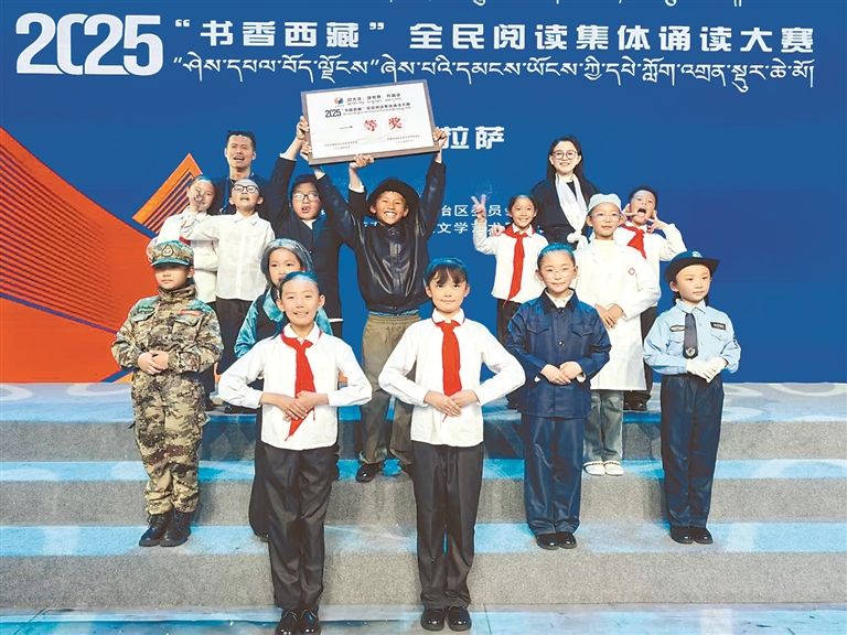 2025年“書香西藏”全民閱讀集體誦讀大賽上,阿里地區(qū)少年代表隊榮獲一等獎,展現(xiàn)閱讀風(fēng)采。阿里地委宣傳部供圖