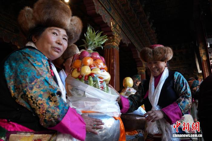 圖為白拉姆節(jié)臨近之際,信眾在大昭寺內(nèi)敬獻供品。貢確 攝
