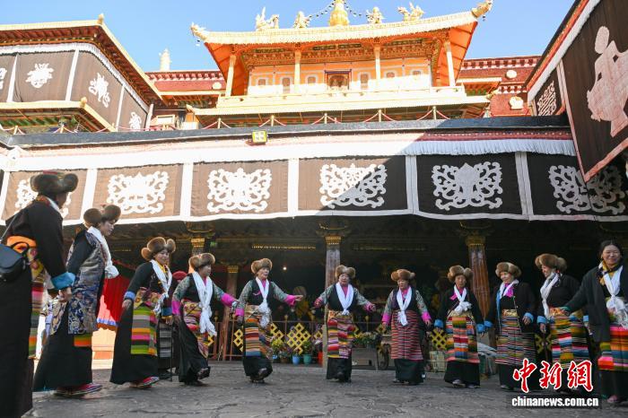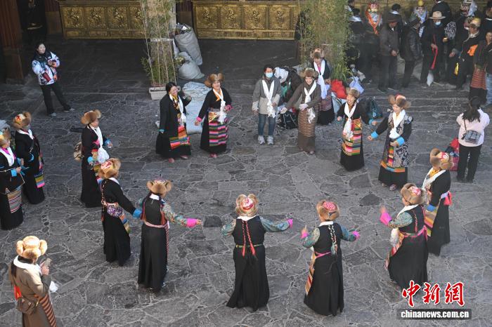 隨著藏歷十月十五白拉姆節(jié)(又稱(chēng)“仙女節(jié)”)臨近,11月28日,西藏拉薩的婦女們?cè)诖笳阉绿饌鹘y(tǒng)舞蹈,迎接“仙女節(jié)”到來(lái)。“仙女節(jié)”即吉祥天母節(jié),藏語(yǔ)稱(chēng)“白來(lái)日追”。相傳藏傳佛教最高護(hù)法神之一班丹拉姆的女兒白拉姆,不顧母親的反對(duì)與赤尊贊私定終身,班丹拉姆一怒之下將赤尊贊趕到拉薩河南岸,規(guī)定二人僅每年的藏歷十月十五日相見(jiàn)。中新社記者 貢嘎來(lái)松 攝