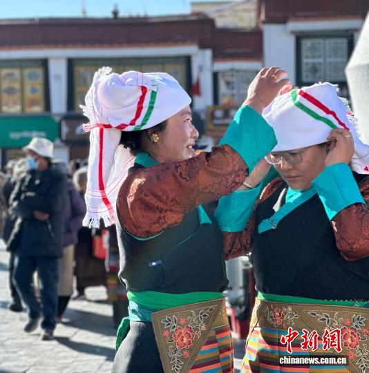 大昭寺廣場,陽光灑在石板地上,發(fā)出細碎而溫潤的光。德吉卓嘎與幾位身著傳統(tǒng)藏裝的女子剛剛結束朝拜,正在互相拍照留念。“每年這天我們幾個朋友都會聚聚,聊聊家里的事,也說說各自新年的打算。”德吉卓嘎笑著說。