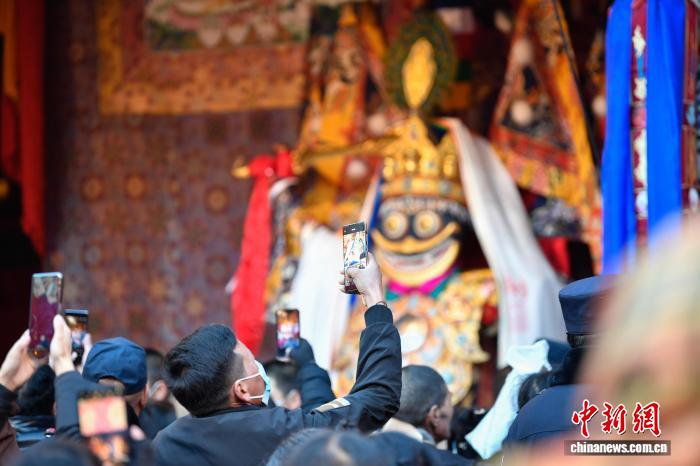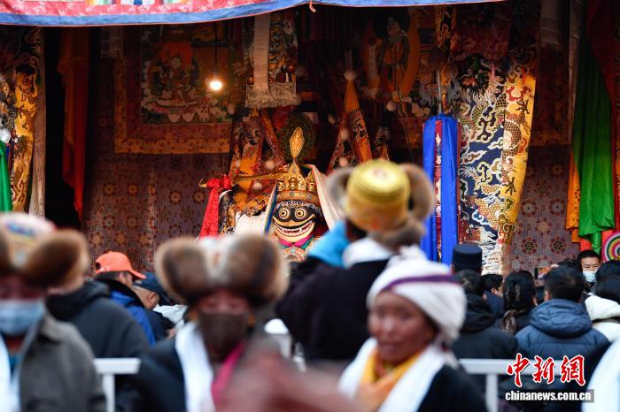 12月4日即藏歷十月十五日是藏族傳統(tǒng)的節(jié)日“白來日追”,俗稱“仙女節(jié)”、“白拉姆節(jié)”等。相傳藏傳佛教最高護(hù)法神之一班丹拉姆的女兒白拉姆,不顧母親的反對(duì)與赤尊贊私定終身,班丹拉姆一怒之下將赤尊贊趕到拉薩河南岸,規(guī)定二人僅每年的藏歷十月十五日相見。圖為信眾在大昭寺朝拜白拉姆像。中新社記者 貢嘎來松 攝