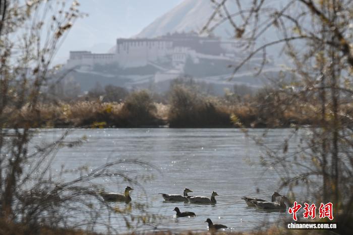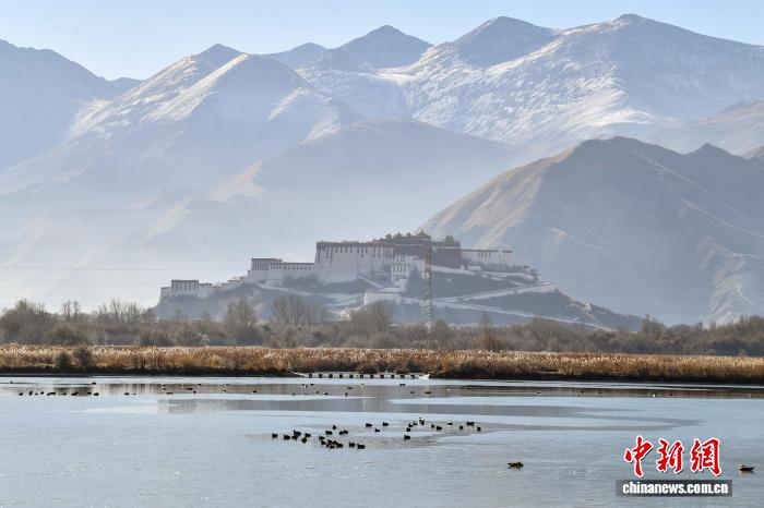 2025年12月9日,世界海拔最高的城市內(nèi)陸天然濕地——拉薩拉魯濕地國(guó)家級(jí)自然保護(hù)區(qū)盡顯冬日盛景。這片總面積12.2平方公里的“拉薩之肺”,初冬時(shí)節(jié)蘆葦泛金,赤麻鴨、斑頭雁等候鳥(niǎo)在此嬉戲覓食。遠(yuǎn)處布達(dá)拉宮巍然矗立,周邊雪山皚皚,自然生態(tài)與人文景觀交相輝映,構(gòu)成一幅兼具壯闊與靈動(dòng)的高原畫(huà)卷,彰顯著拉薩人與自然和諧共生的生態(tài)之美。圖為拉薩市民在拉魯濕地晨練。中新社記者 貢嘎來(lái)松 攝