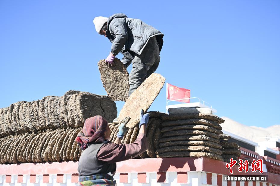 2025年1月7日,西藏定日發(fā)生6.8級(jí)地震,時(shí)隔近一年,12月24日,中新社記者探訪災(zāi)后重建。日喀則森嘎村的藏式新房錯(cuò)落有致,柏油路連通家家戶戶,屋頂太陽能熱水器整齊排列,炊煙裊裊間滿是生機(jī)。據(jù)悉,此次日喀則地震災(zāi)后重建覆蓋7縣47鄉(xiāng)鎮(zhèn)486村,2.2萬余戶重建民房、1.05萬余戶維修加固民房已全部竣工交付,受災(zāi)民眾喜遷新居。圖為重建后的森嘎村村民在自家的新房圍墻上擺放干牛糞。中新社記者 貢嘎來松 攝
