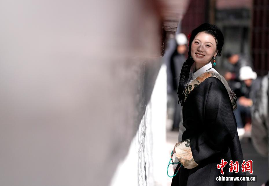 12月24日,游客在拉薩市八廓街拍攝藏服寫真。在第八輪“冬游西藏”活動持續(xù)推動下,不少游客選擇在冬季走進西藏,感受雪域高原的獨特魅力。除了免費游覽布達拉宮、羅布林卡等景區(qū),體驗藏服寫真也成為大多數(shù)游客行程中的“必選項”。中新社記者 李林 攝