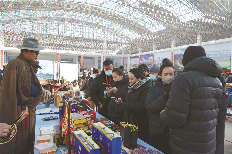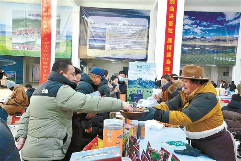 這次展銷會(huì)不僅線下熱鬧,線上也同樣火爆。為了讓各類產(chǎn)品走得更遠(yuǎn),展銷會(huì)特意搭建起“線上直播帶貨+線下現(xiàn)場選購”的雙線銷售通道,一邊是線下市民現(xiàn)場挑、現(xiàn)場買,新鮮看得見、品質(zhì)摸得著;一邊是主播對(duì)著鏡頭,向全國網(wǎng)友推介那曲好物,讓遠(yuǎn)在千里之外的消費(fèi)者也能品嘗到那曲味道。同時(shí),展銷會(huì)還邀請(qǐng)電商平臺(tái)、采購商代表和參展商精準(zhǔn)對(duì)接,幫本土農(nóng)畜產(chǎn)品打通銷路,再也不愁“酒香巷子深”;積極引導(dǎo)機(jī)關(guān)、企事業(yè)單位及社會(huì)各界參與消費(fèi)幫扶,以“以購代扶”“以買促銷”的方式助力本土產(chǎn)業(yè)發(fā)展,在全市形成“人人支持本土產(chǎn)業(yè)、人人參與鄉(xiāng)村振興”的濃厚氛圍。