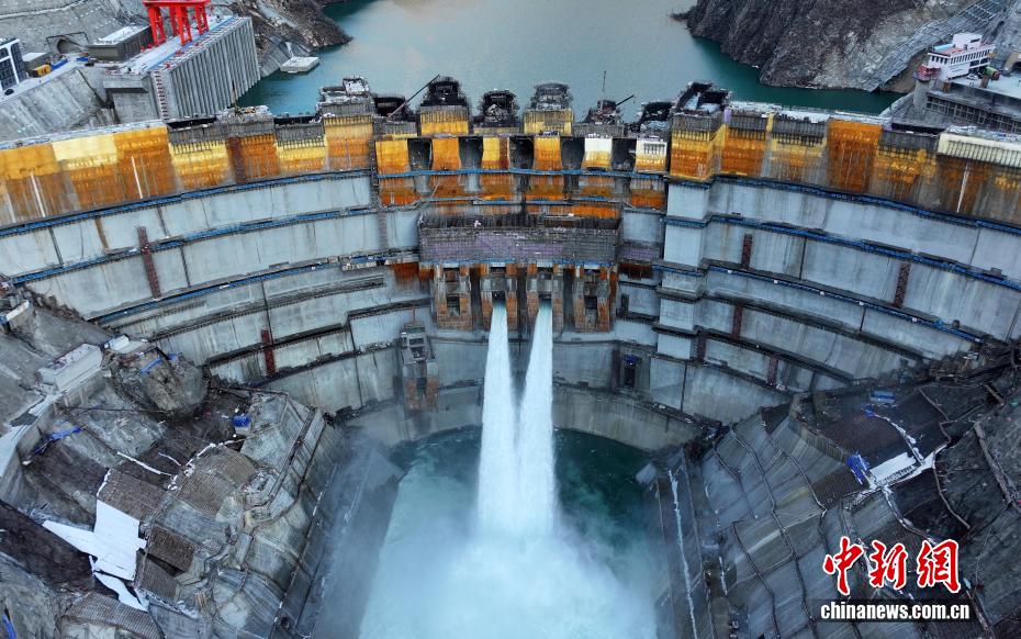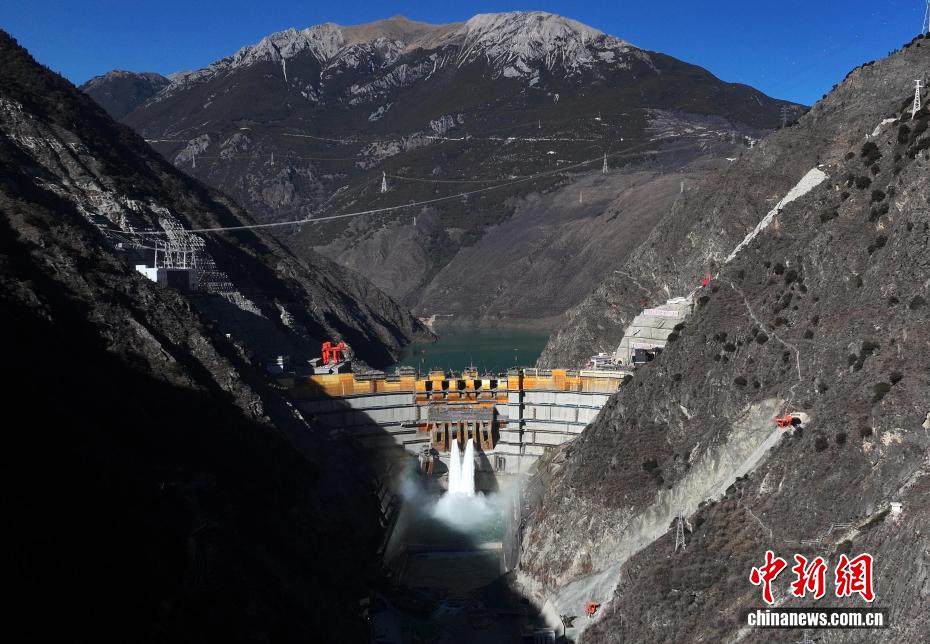 12月27日,中國在建海拔最高雙曲拱壩電站——葉巴灘水電站首批機組正式投產發(fā)電。葉巴灘水電站位于四川省甘孜州白玉縣與西藏自治區(qū)貢覺縣交界的金沙江干流上。水電站總裝機容量224萬千瓦,此次首批投產發(fā)電的機組為4號和3號機組。圖為12月25日,航拍葉巴灘水電站大壩。(無人機照片)中新社記者 王磊 攝