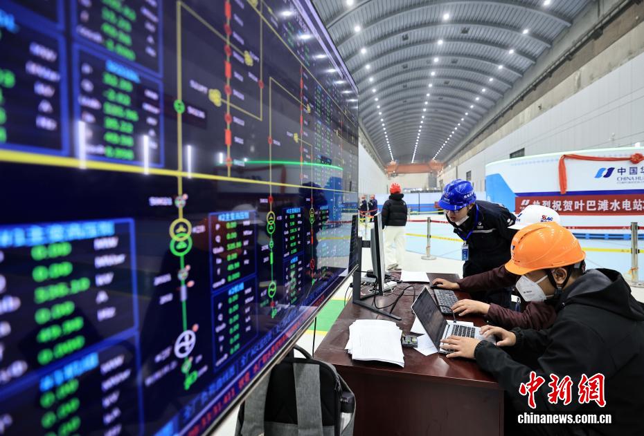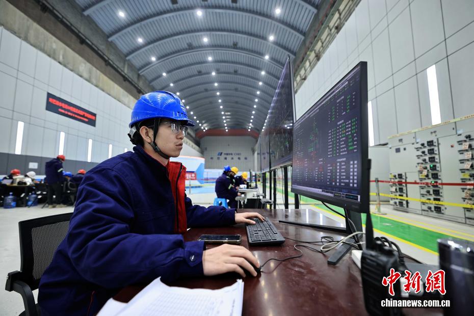 12月27日,中國在建海拔最高雙曲拱壩電站——葉巴灘水電站首批機組正式投產發(fā)電。葉巴灘水電站位于四川省甘孜州白玉縣與西藏自治區(qū)貢覺縣交界的金沙江干流上。水電站總裝機容量224萬千瓦,此次首批投產發(fā)電的機組為4號和3號機組。圖為12月24日,中控室值班人員正開展上位機監(jiān)盤工作。中新社記者 王磊 攝
