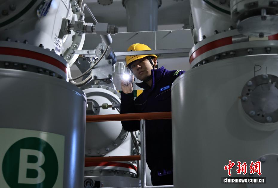 12月27日,中國在建海拔最高雙曲拱壩電站——葉巴灘水電站首批機組正式投產發(fā)電。葉巴灘水電站位于四川省甘孜州白玉縣與西藏自治區(qū)貢覺縣交界的金沙江干流上。水電站總裝機容量224萬千瓦,此次首批投產發(fā)電的機組為4號和3號機組。圖為12月24日,值班員在GIS巡視檢查。中新社記者 王磊 攝