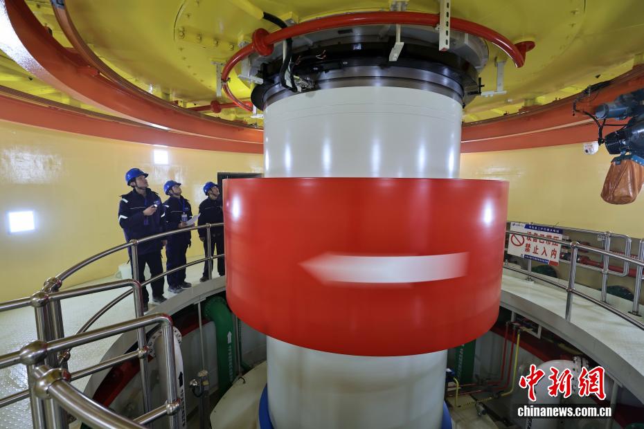12月27日,中國在建海拔最高雙曲拱壩電站——葉巴灘水電站首批機組正式投產發(fā)電。葉巴灘水電站位于四川省甘孜州白玉縣與西藏自治區(qū)貢覺縣交界的金沙江干流上。水電站總裝機容量224萬千瓦,此次首批投產發(fā)電的機組為4號和3號機組。圖為12月25日,巡檢員在機組運行水車室巡查。中新社記者 王磊 攝