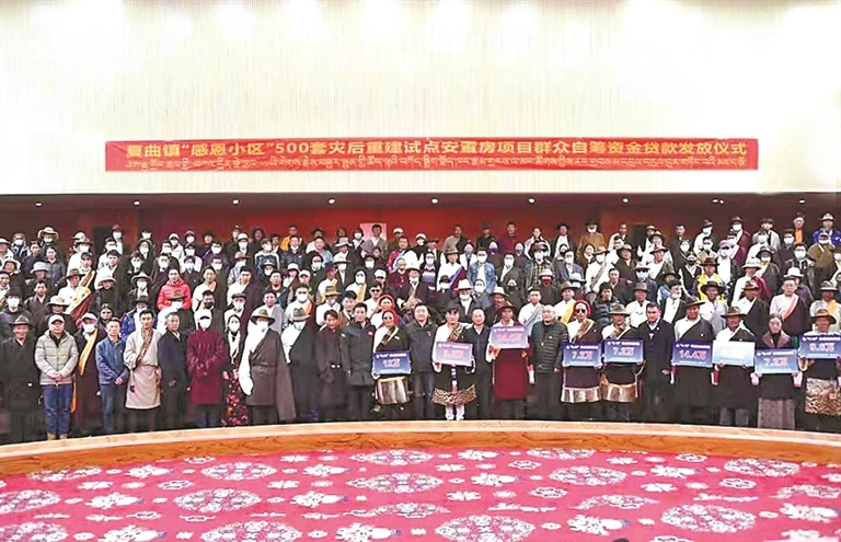 圖為西藏銀行為夏曲鎮(zhèn)受災群眾發(fā)放貸款,幫助群眾重建家園。