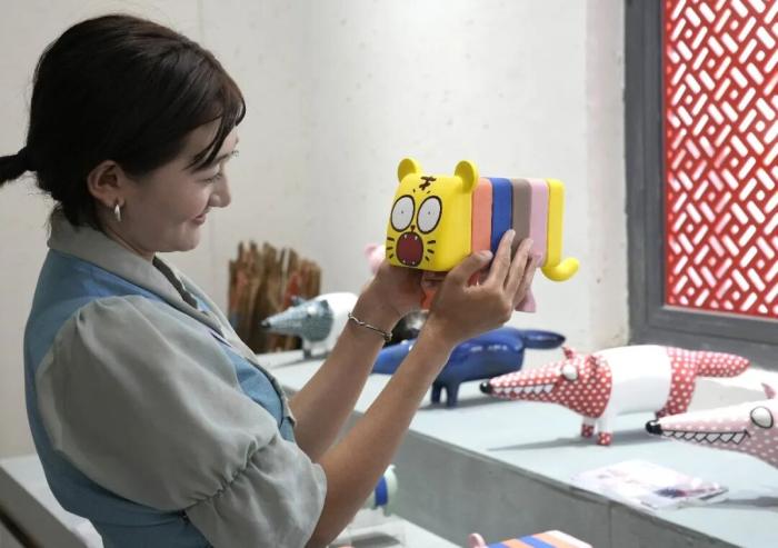 2025年8月6日,西藏拉薩蓮華之寶中華藏瓷文化旅游體驗(yàn)園景區(qū)里,工作人員展示卡通陶瓷工藝制品。該體驗(yàn)園集展覽、銷售與文化體驗(yàn)于一體,通過與高校開展校企合作等方式,將唐卡繪畫藝術(shù)與陶瓷工藝結(jié)合,傳播優(yōu)秀傳統(tǒng)文化。中新社記者 李林 攝