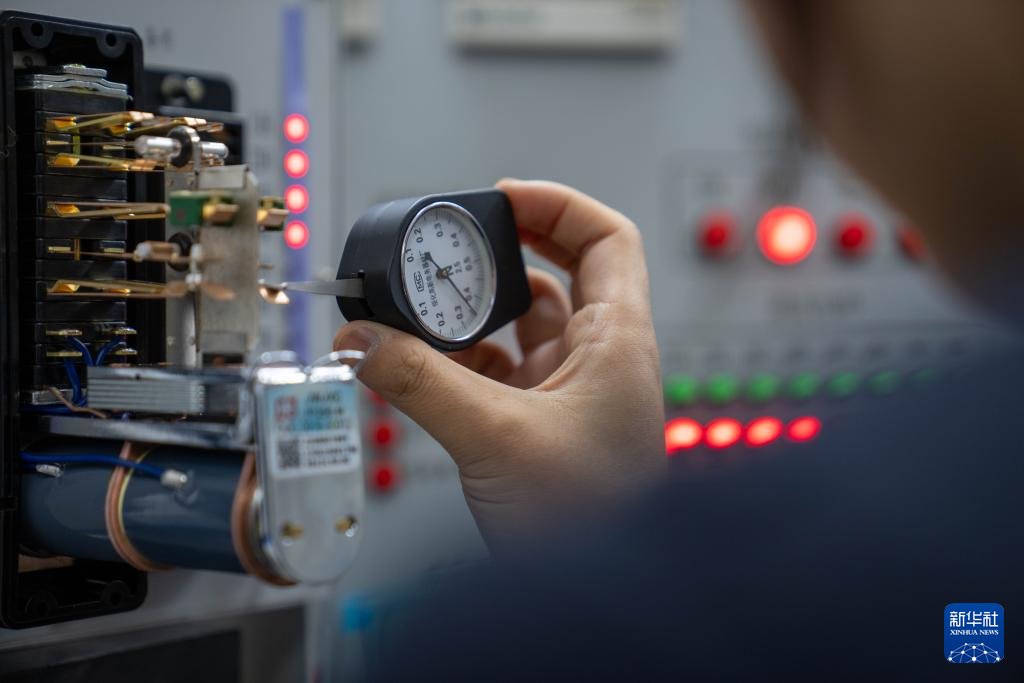 1月6日,拉薩基礎(chǔ)設(shè)施段電務(wù)專修車間繼電器檢修工區(qū)的信號工丁增央金在測試?yán)^電器節(jié)點(diǎn)壓力。新華社記者 旦增尼瑪曲珠 攝