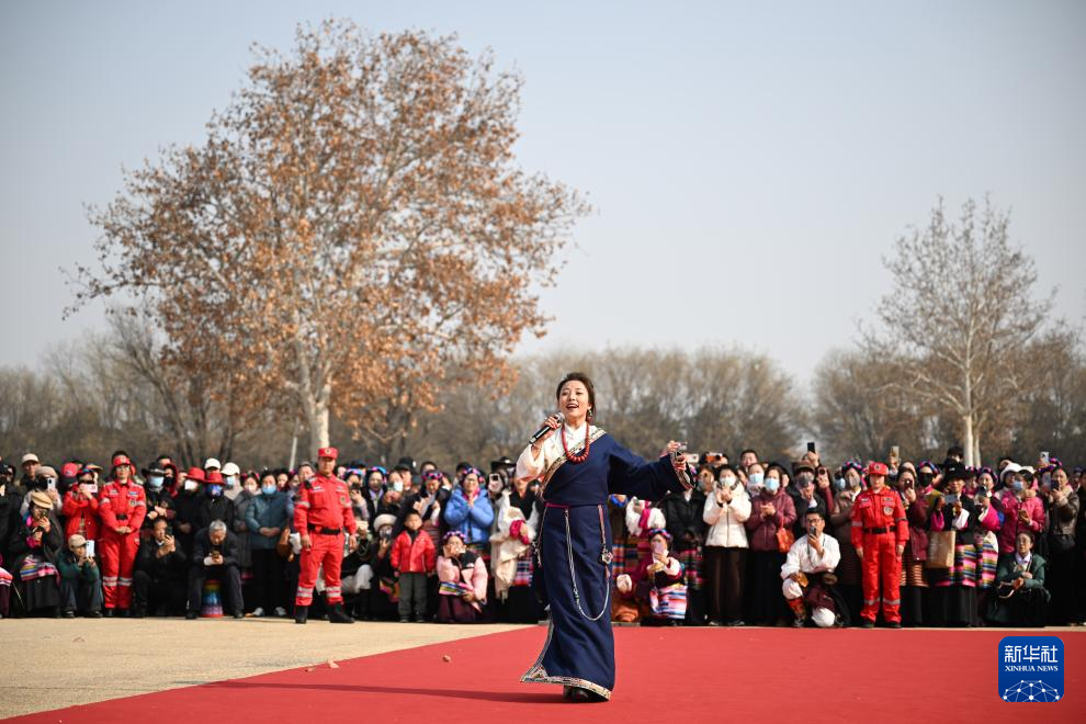 1月17日,來自西藏自治區(qū)昌都市基層文藝團(tuán)體的演員在西安大明宮國家遺址公園演唱歌曲。