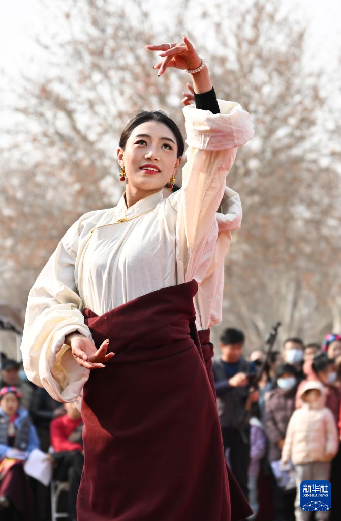 1月17日,一場(chǎng)藏族非遺展演在西安大明宮國家遺址公園舉行,來自西藏自治區(qū)昌都市基層文藝團(tuán)體的演員用精彩的節(jié)目展示藏族文化魅力。新華社記者 張博文 攝