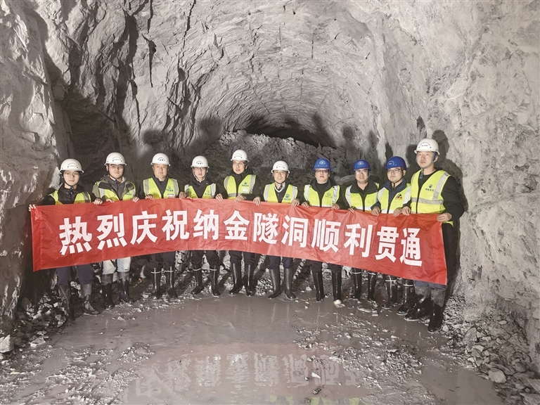 納金隧洞全長5036米,成型斷面為城門洞形,寬3.0米、高3.7米,采用鉆爆法從兩端相向開挖。隧洞穿越中高山地貌,最大埋深約640米,隧洞圍巖以Ⅲ類為主,Ⅳ、Ⅱ類次之。自開工以來,項(xiàng)目團(tuán)隊(duì)科學(xué)組織、精細(xì)管理,克服了高海拔隧洞產(chǎn)生的巖爆和集中涌水等惡劣地質(zhì)環(huán)境,嚴(yán)格采取相應(yīng)支護(hù)與封堵措施,連續(xù)5個(gè)月單側(cè)工作面月進(jìn)尺超過200米,最高月進(jìn)尺245米。后續(xù)納金隧洞工程將轉(zhuǎn)入隧洞混凝土襯砌施工,項(xiàng)目部將提前謀劃,精心組織,保證施工質(zhì)量與安全,做好轉(zhuǎn)序工作,確保納金隧洞首倉襯砌混凝土按計(jì)劃開倉澆筑。