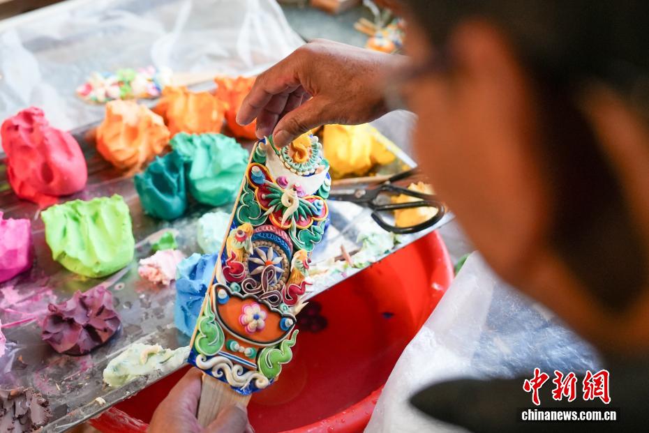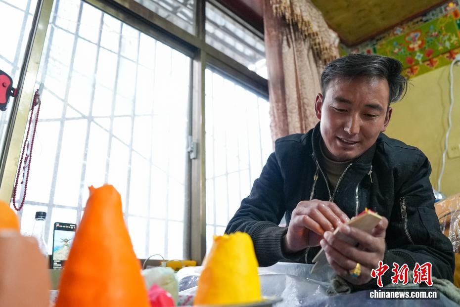 2月4日,隨著藏歷新年臨近,拉薩街頭年味漸濃,年貨市場上的“孜扎”迎來熱銷。酥油花藏語稱“孜扎”,是藏歷新年吉祥物切瑪盒的重要組件,也是藏族民眾家中必備的年貨。酥油花以酥油為主要原料,由匠人純手工捏制而成,造型涵蓋佛像、人物、花卉樹木、飛禽走獸等,常見圖案包含吉祥八寶、和諧四瑞、長壽圖等,承載著藏族民眾對新年平安吉祥、萬事順?biāo)斓拿篮闷碓?。圖為手工藝人在制作酥油花。貢確 攝