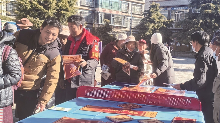 拉薩市城關(guān)區(qū)納金路北社區(qū)的活動(dòng)現(xiàn)場暖意涌動(dòng)、人氣頗旺,居民有序參與義診、春聯(lián)贈(zèng)送等便民服務(wù)。納金路北社區(qū)組織醫(yī)療專家開展健康咨詢與健康知識(shí)普及,細(xì)致回應(yīng)居民健康訴求;西藏毛主席像章博物館精心定制兼具藏式特色與美好寓意的春聯(lián),免費(fèi)發(fā)放給現(xiàn)場群眾。大家接過滿載祝福的春聯(lián),臉上洋溢著幸福笑容,彼此互致新春問候,現(xiàn)場歡聲笑語、暖意融融,濃濃的年味兒與民族團(tuán)結(jié)的溫情交織彌漫,節(jié)日氛圍喜慶濃厚。