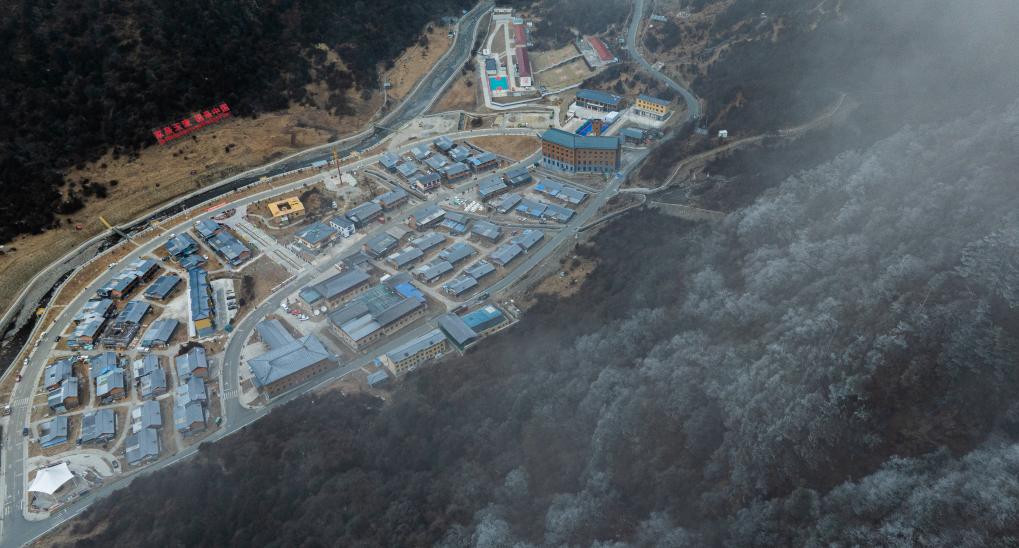 這是2月5日拍攝的云霧中的玉麥鄉(xiāng)玉麥村全景(無人機(jī)照片)。新華社記者 丁增尼達(dá) 攝
