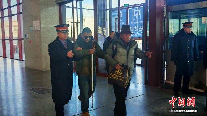 圖為日喀則站客運(yùn)工作人員幫扶盲人進(jìn)站候車。拉薩車務(wù)段 供圖