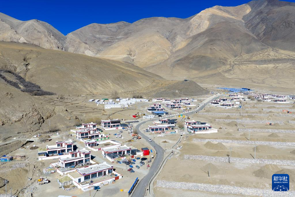 2月16日拍攝的西藏定日縣長所鄉(xiāng)古榮村災后重建的新居(無人機照片)。新華社記者 旦增尼瑪曲珠 攝