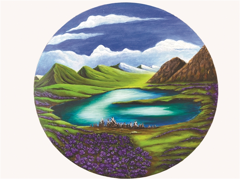 唐瑟達(dá)娃的藝術(shù)旅程,從父親繪制的藏柜旁出發(fā),穿越江南的煙雨與拉薩的日光,深入傳統(tǒng)繪畫藝術(shù)的博大精深,最終又回歸到高原的群山、江河與普通人的笑臉上。這位“清澈的明月”,依然在屬于她的藝術(shù)道路上從容行走。她的目光清澈,腳步堅(jiān)定,用那支蘸滿了生活色彩與生命熱情的畫筆繼續(xù)歌唱,歌唱她眼中那個(gè)真實(shí)、生動(dòng)、和美的西藏。