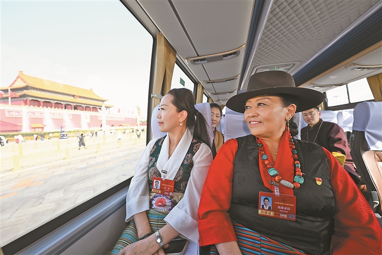 從春天啟程,向未來進(jìn)發(fā)。下午2時(shí)許,西藏代表委員抵達(dá)駐地,向大會(huì)報(bào)到。