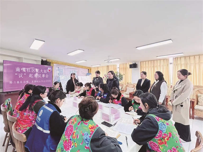 依托區(qū)委“聚龍”黨建品牌,堆龍德慶區(qū)婦聯(lián)培育“龍姐”為民服務(wù)品牌,打造有溫度的服務(wù)名片。張峰瑋表示:“要讓‘龍姐’成為婦女最親近的依靠。”如今維權(quán)幫扶、政策宣講等服務(wù)已實(shí)現(xiàn)全域覆蓋,“找龍姐、信龍姐、靠龍姐”成為群眾共識(shí),婦聯(lián)凝聚力持續(xù)增強(qiáng)。同時(shí),聚焦基層治理,堆龍德慶區(qū)婦聯(lián)推動(dòng)?jì)D女議事會(huì)擴(kuò)面增效,阿佳“議”起來(lái)議事會(huì)、“花大姐”議事會(huì)等在各村(社區(qū))蓬勃開展,引導(dǎo)婦女從旁觀者轉(zhuǎn)變?yōu)橹魅宋蹋耘灾腔蹫猷l(xiāng)村振興注入活力。張峰瑋說(shuō):“要讓婦女敞開心扉聊家事、議村事,讓心聲有人傾聽、訴求有人回應(yīng)。”