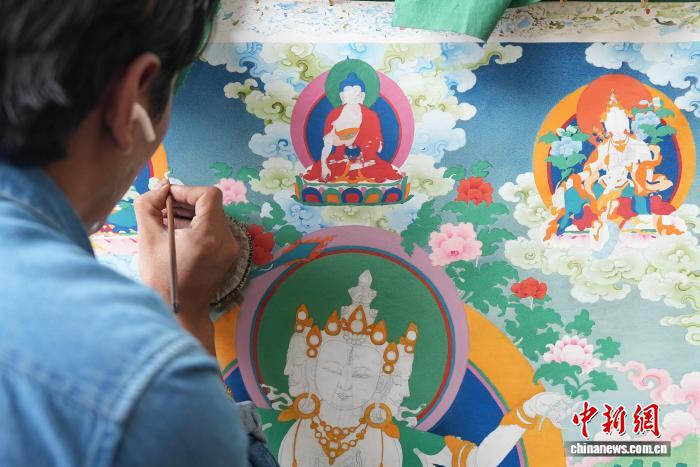 3月12日,記者探訪西藏丹巴繞旦唐卡藝術(shù)學(xué)校。該校1980年創(chuàng)辦,46年來免費培養(yǎng)唐卡藝術(shù)人才500余名,現(xiàn)有漢藏籍在校生80余名,學(xué)制8至10余年。校內(nèi)畫師以礦物顏料潛心創(chuàng)作,學(xué)校秉持“先做人后學(xué)藝”理念,通過系統(tǒng)化教學(xué)傳承勉唐派技藝,畢業(yè)生就業(yè)率近99%,推動唐卡文化持續(xù)傳承發(fā)展。圖為唐卡作品。貢確 攝