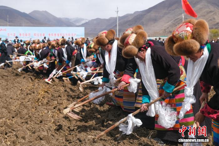3月16日上午,拉薩市曲水縣達(dá)嘎鎮(zhèn)色達(dá)村村民身著節(jié)日盛裝,舉行傳統(tǒng)春耕活動(dòng)。中新社記者 江飛波 攝