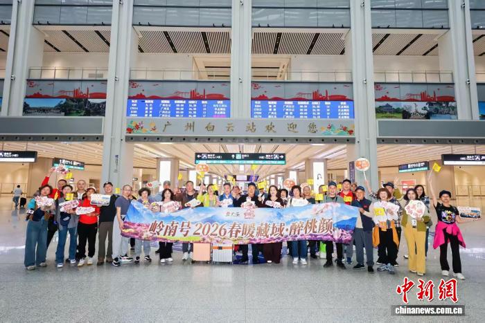 “2026西藏林芝桃花包列”主題系列團21日從廣州出發(fā),近200名游客坐上火車,奔赴雪域高原,邂逅雪山與桃花交織的春日盛景。