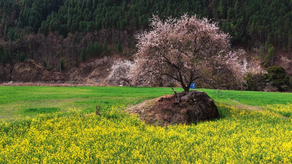 西藏林芝市波密縣的油菜花與桃花。新華社記者 普布次仁 攝