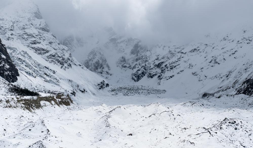 尚未到旅游旺季,仍有十幾名外地游客來到這里,喘著粗氣,向深處一步步走去。來自江西的游客熊先生和朋友從拉薩自駕而來,專程前來體驗(yàn)白普隆溝?!暗搅诉@里,發(fā)現(xiàn)這里有種野性的美?!毙芟壬钢h(yuǎn)處被雪霧籠罩的山脊說。