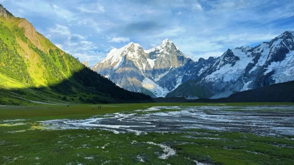 這條夾在山林與冰川之間的山谷,過去是牧民的夏季牧場(chǎng)。如今,徒步旅行將這片秘境帶入更多人的視野,游人慕名而來,白普隆溝成了具有野性之美的打卡地。