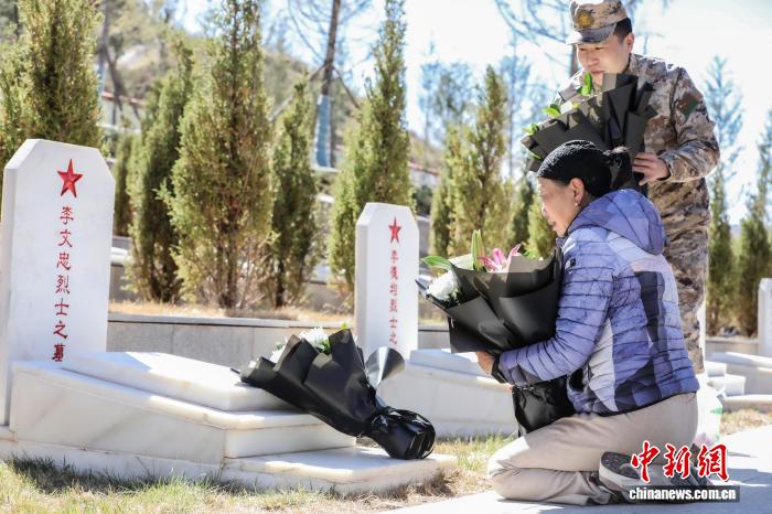 在清明之際的西藏昌都,陽光穿透稀薄的云層,灑在烈士陵園的石板上。60多歲的李容艷站在父親李文忠的墓碑前,目光久久停留在身前的墓碑上,碑面鮮紅的五角星熠熠生輝,“烈士李文忠”五個紅字樸素莊重,仿佛訴說著崢嶸歲月。