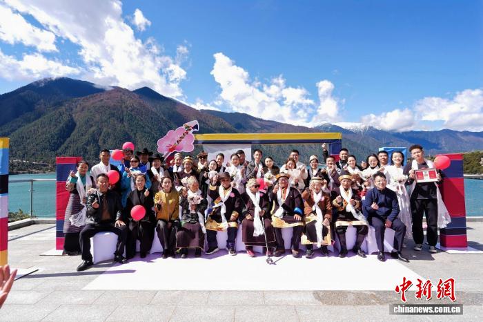 圖為新人們在活動(dòng)現(xiàn)場留影。林芝市民政局供圖