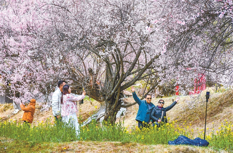圖為游客在林芝市嘎拉村“桃花源”景區(qū)內(nèi)打卡拍照。記者 劉楓 攝
