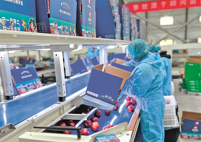 圖為林芝盛世農(nóng)業(yè)科技有限公司工人在包裝蘋果(資料圖片)。