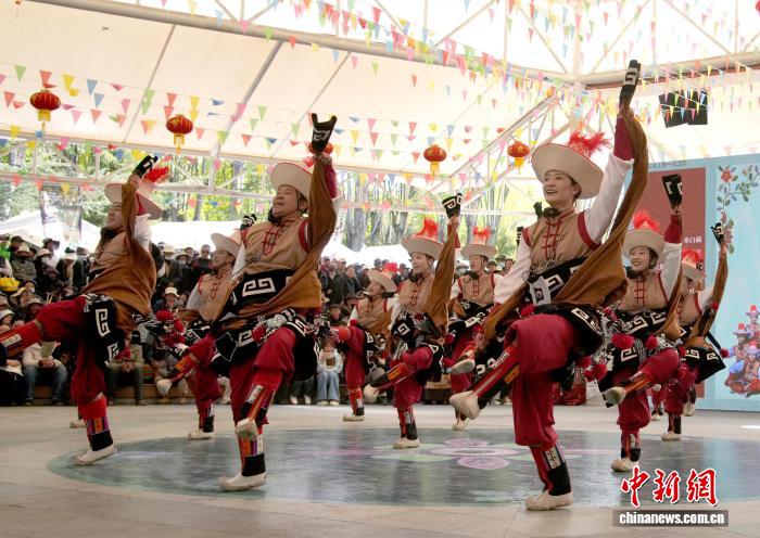 圖為第三屆拉薩春日書會開幕活動上的文藝表演。李林 攝