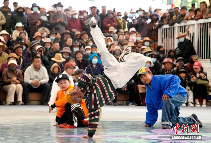 圖為第三屆拉薩春日書會開幕活動上的少兒街舞演出。李林 攝