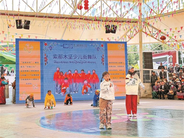 第三屆“拉薩春日書會(huì)”暨拉薩市全民閱讀推廣周系列活動(dòng)開幕式現(xiàn)場的少兒街舞表演。