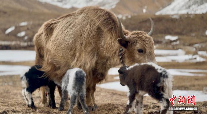 圖為西藏比如縣亞貢母牦牛與其產(chǎn)下的三胞胎牛犢。比如融媒供圖
