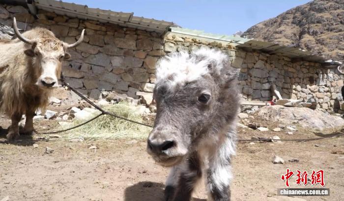 圖為三胞胎牦牛之一(右)。比如融媒供圖