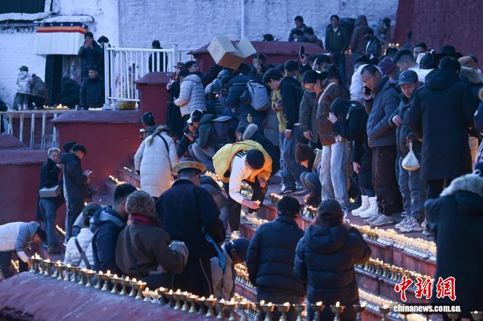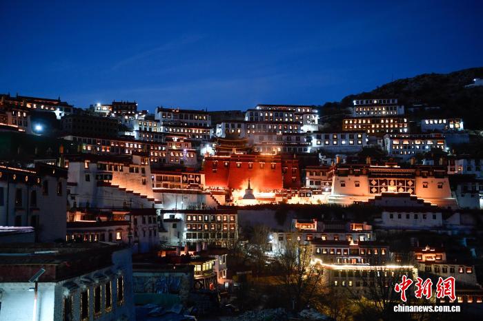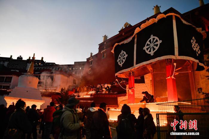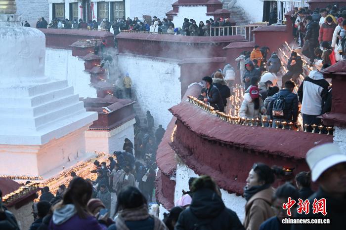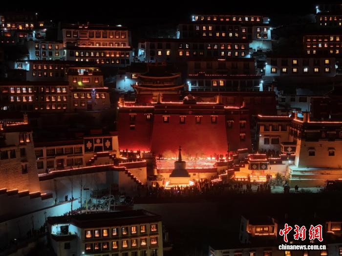 圖為燃燈日酥油燈點(diǎn)亮甘丹寺。 中新社記者 貢嘎來(lái)松 攝
