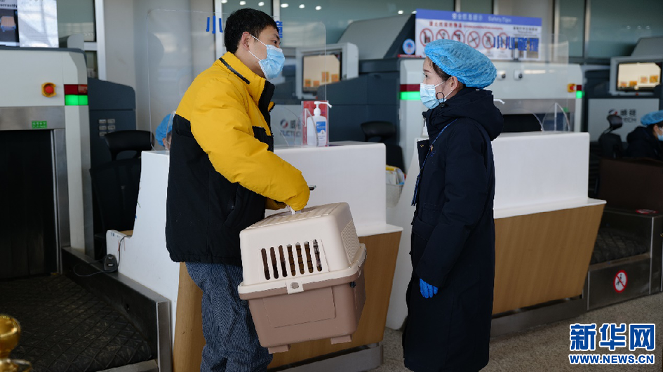 1月17日,拉薩貢嘎機場內(nèi)旅客正在向工作人員咨詢寵物托運事宜。新華網(wǎng) 貢桑央吉(實習(xí)生) 攝
