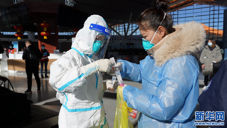 1月17日,防疫人員在拉薩貢嘎機場大廳進行環(huán)境采樣。新華網(wǎng) 達珍 攝