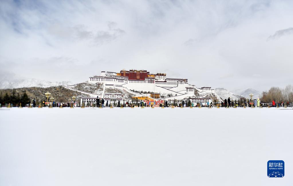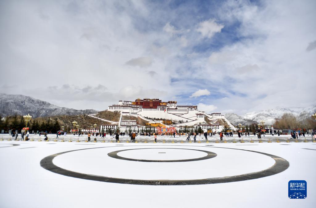 2月5日拍攝的雪后布達拉宮廣場。新華社記者 覺果 攝